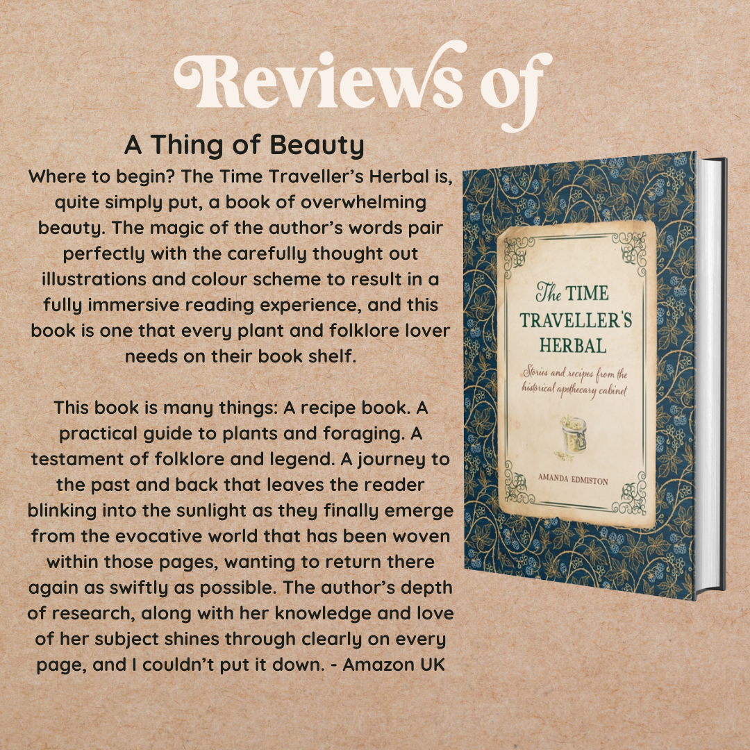 This is a journey that I, and many others, would undertake in a heartbeat. The careful referencing, glossary and capsule collection of resources within this small volume are all incredibly useful. Edmiston’s Time Traveller’s Herbal is sure to become a key text in several areas of study: traditional medicine; oral traditions; historiography of herbalism; food heritage; auto-ethnography as well as in Scottish literature. It would make the perfect gift, or a valuable addition to a thoughtfully curated library.”
